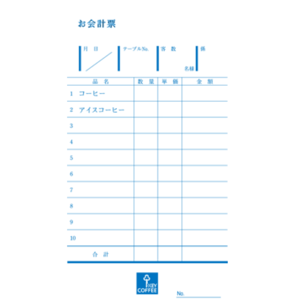 シンプルな1枚ものの伝票です。お客様のオーダーが一度に決まるお店向きの伝票です。