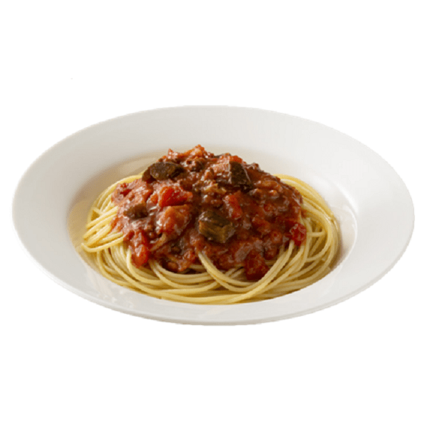 スッキリとしたトマトソースに牛ひき肉の旨味とオリーブオイルの風味となすを加えたソースです。