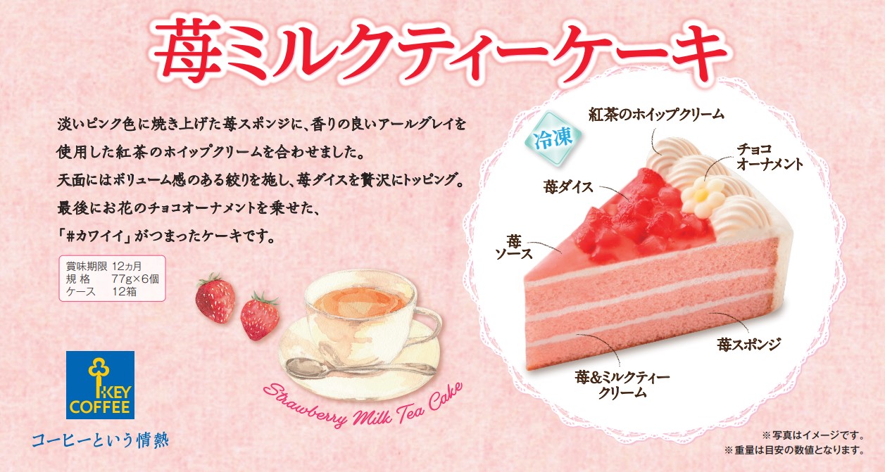 淡いピンク色に焼き上げた苺スポンジに香りのよいアールグレイ風味のホイップクリームを合わせました。天面にはボリューム感のある絞りを施し、苺を贅沢にトッピング。