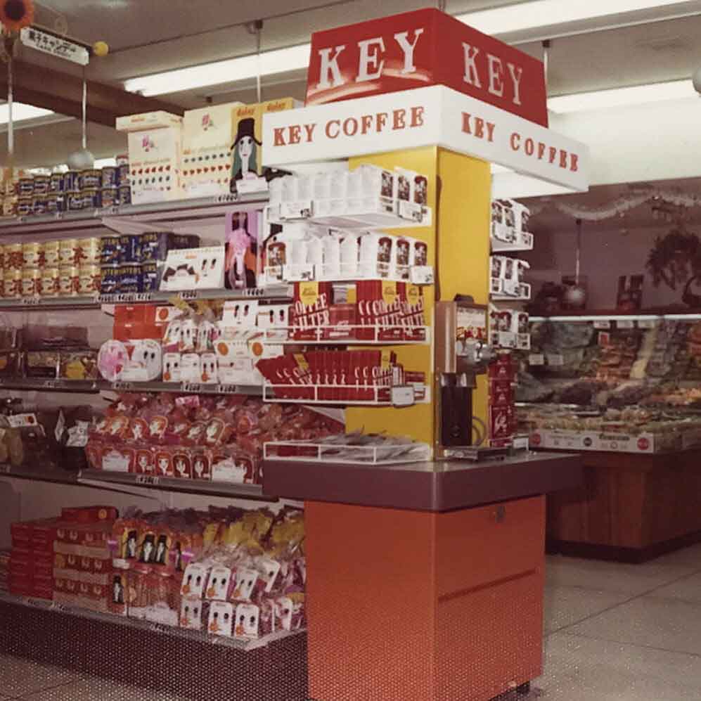 お客様に好みの豆を自由に挽いていただくコーヒー販売方式は画期的なシステムとなり、家庭用商品の販路拡大となる。什器はコーヒー豆売り場になくてはならない存在となる