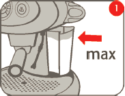 1. 水タンクに水を1リットル(上限まで)入れてください。