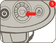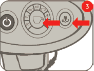 <X7の場合>コーヒーボタンを押し、コーヒーボタンが青く光るまで、スチームノブを回してスチームを放出し続けてください。