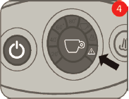 6. スケール除去サイクルの最後に(約30分後)、マシンはブザー音を鳴らし、コーヒースイッチが再度点滅を始めます。