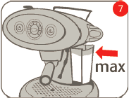 <X7.1の場合>コーヒーボタンを押し、容器をスチームノズルの下に置いてください。