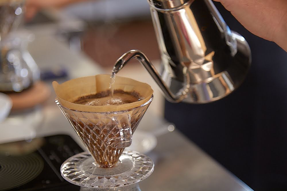 (4)コーヒー液がフラスコに落ち切り、ろ過器の表面に泡が残れば、理想的に抽出ができた状態です。時間でいうと50秒以内にフラスコにコーヒーが落ちるくらいが理想といえます。
