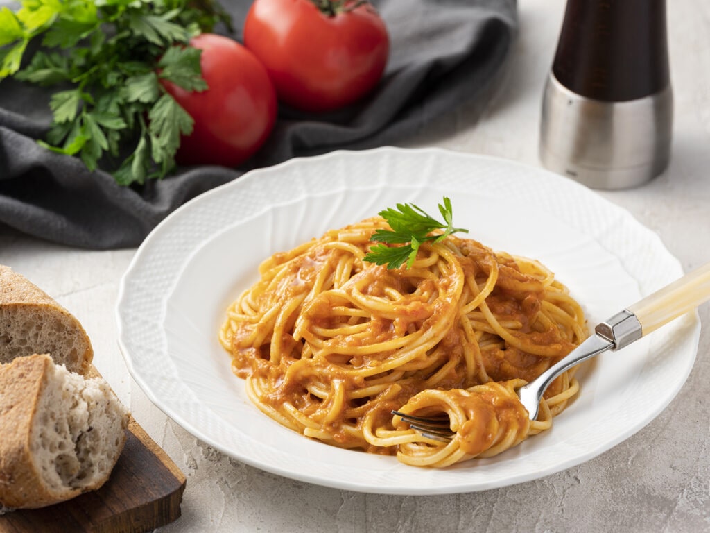 国産紅ズワイ蟹にイタリア産完熟トマトを合わせ、アメリケーヌソースと生クリームのコクを重ねました。
