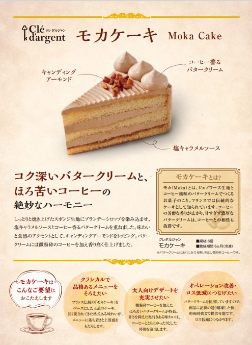 微粉砕のコーヒーを使用した香り高いバタークリームに、しっとりと焼き上げたスポンジ、塩キャラメルのソースをあわせました。