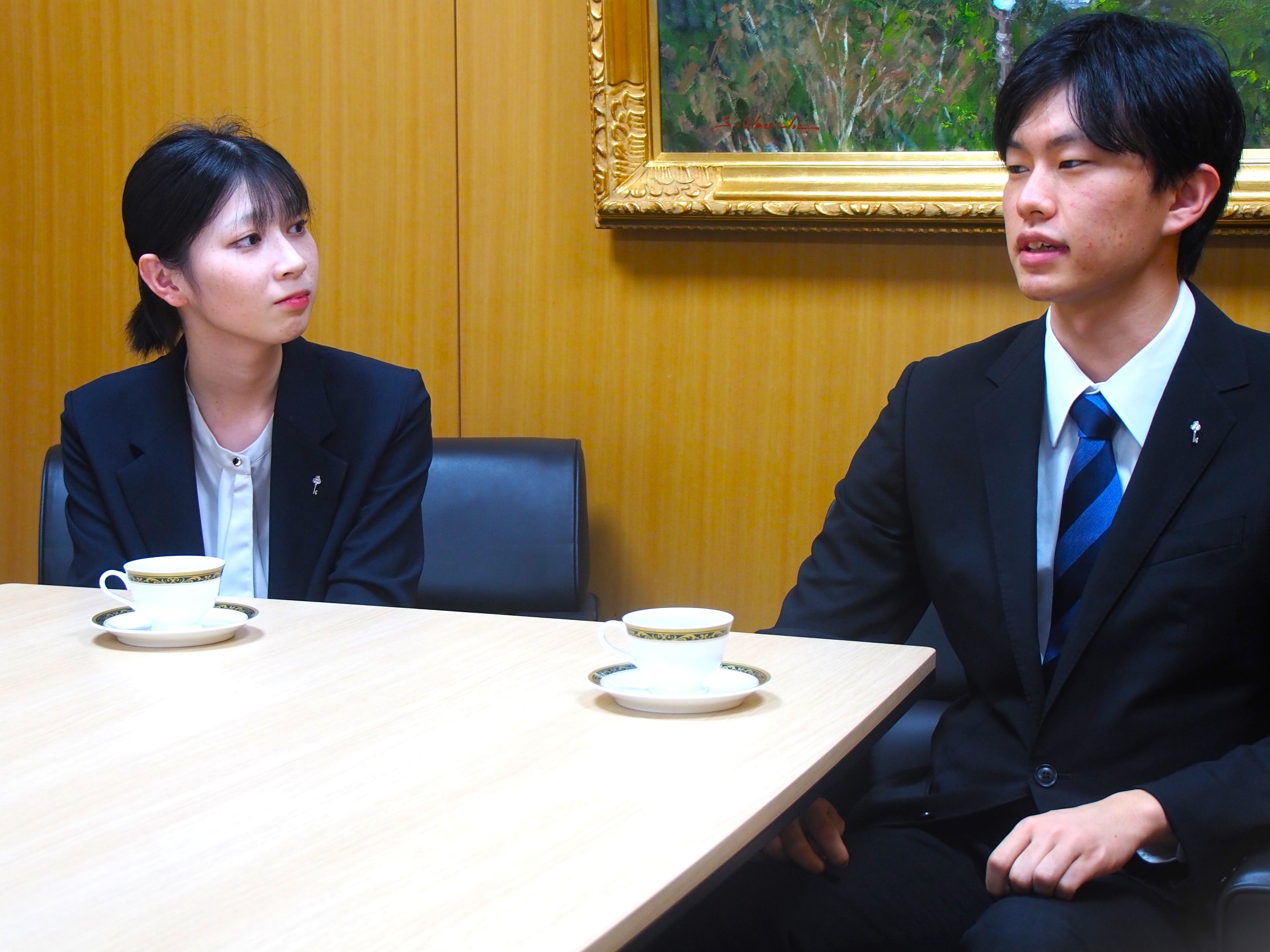 (左から)【入社1年目】関東工場 製造課 松下 麟太郎、【入社2年目】秘書広報部 吉田 遥、