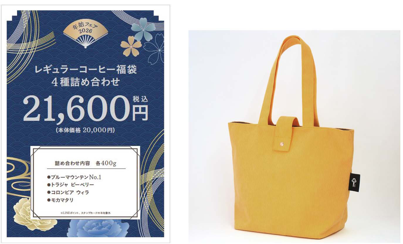 キーコーヒー株式会社(本社:東京都港区、社長:柴田 裕)は、2026年年始(※)より『コーヒーお楽しみ箱 2026』『2026年 レギュラーコーヒー福袋』を、全国の直営ショップにて数量限定で発売します。
