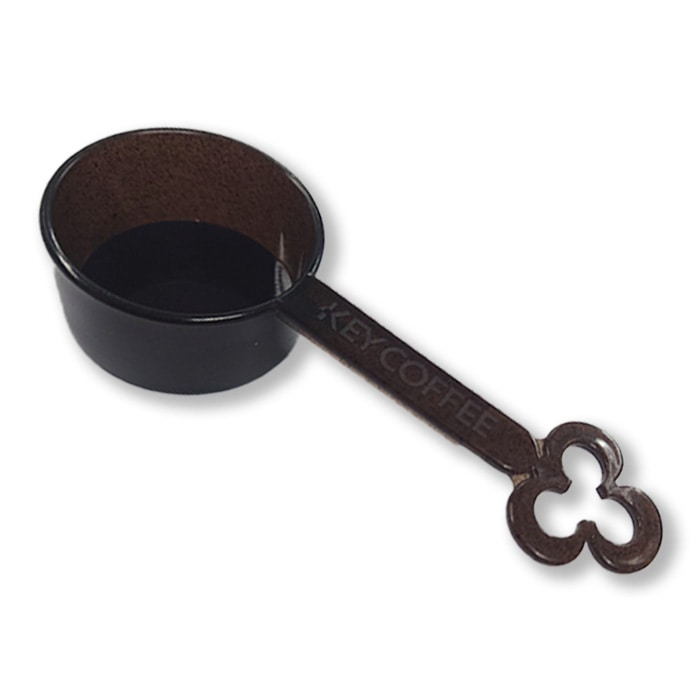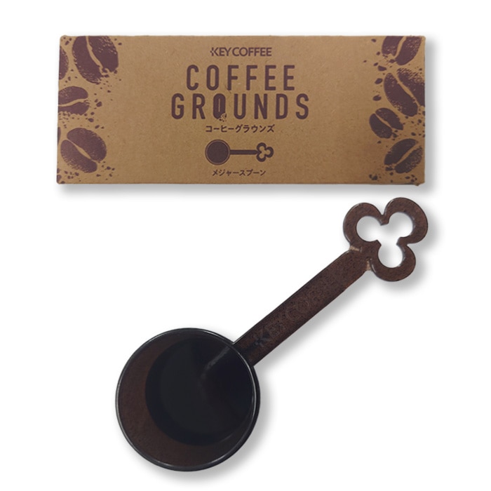 このメジャースプーンは、一部に抽出後のコーヒー粉(コーヒーグラウンズ ※)を使用して作りました。 鍵のマークのフック付きのデザインで、KEY COFFEEのロゴ入りです。 コーヒーグラウンズとは、コーヒーを抽出した後に残る粉のことです。 キーコーヒーでは、「コーヒーグラウンズ」のアップサイクルの推進など、持続可能なコーヒー生産の実現に向けた取り組みを進めています。 ※メジャースプーン重量のうち、約4%使用