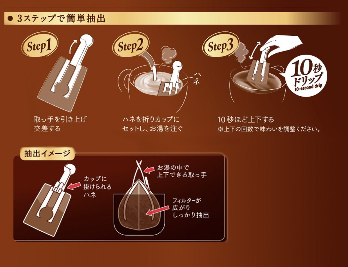 「使いやすい」「粉がこぼれない」「捨てやすい」など、使用時のストレスが少ない簡易抽出コーヒーです。