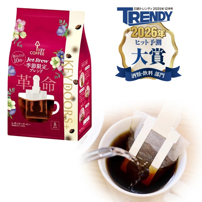 商品特徴 JET BREWは、お湯の中でフィルターを上下に振るだけで、レギュラーコーヒーが最短10秒で抽出可能! 「使いやすい」「粉がこぼれない」「捨てやすい」など、使用時のストレスが少ない簡易抽出コーヒーです。 特許技術により、短時間で手軽にレギュラーコーヒーをお楽しみいただけます。 味わい 季節にあわせてブレンドしたコーヒーをお届けします。 秋冬にぴったりな芳醇な香りとほろ苦い後味が特徴です。