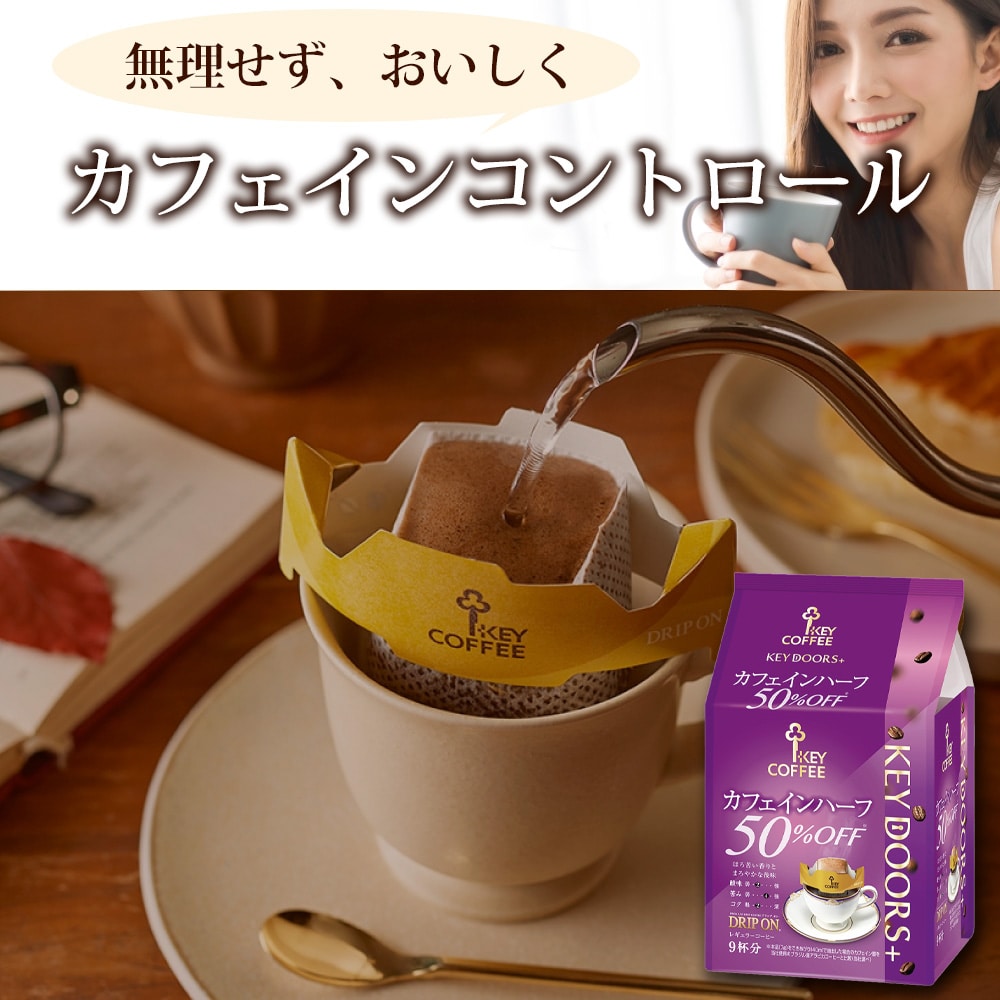 味わい カフェインを除去したコーヒー豆をブレンドすることで、カフェイン量を50%OFFにしました。ほろ苦い香りとまろやかな後味が特徴です。 無理せず、おいしく、カフェインコントロール。