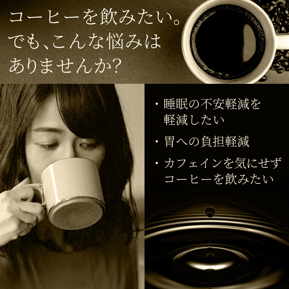 カフェインを除去したコーヒー豆をブレンドすることで、カフェイン量を50%OFFにしました。ほろ苦い香りとまろやかな後味が特徴です。