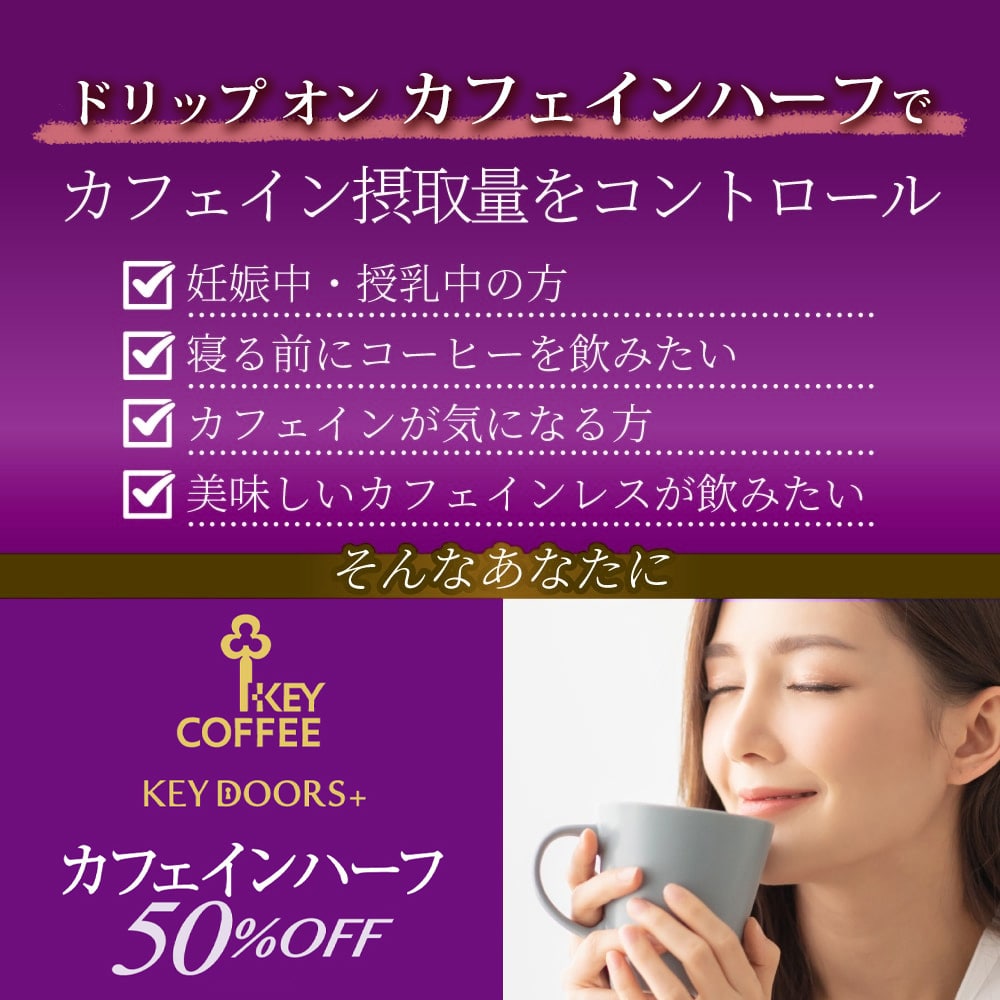 商品特徴 選び抜いた原料と経験豊富なブレンダーと焙煎士が醸し出す豊かな香りと味わいを提供する「KEY DOORS+」シリーズ。 カップにセットしてお湯を注ぐだけで手軽に本格コーヒーが楽しめるドリップ オンだから、忙しい朝や仕事の合間におすすめのタイプです。