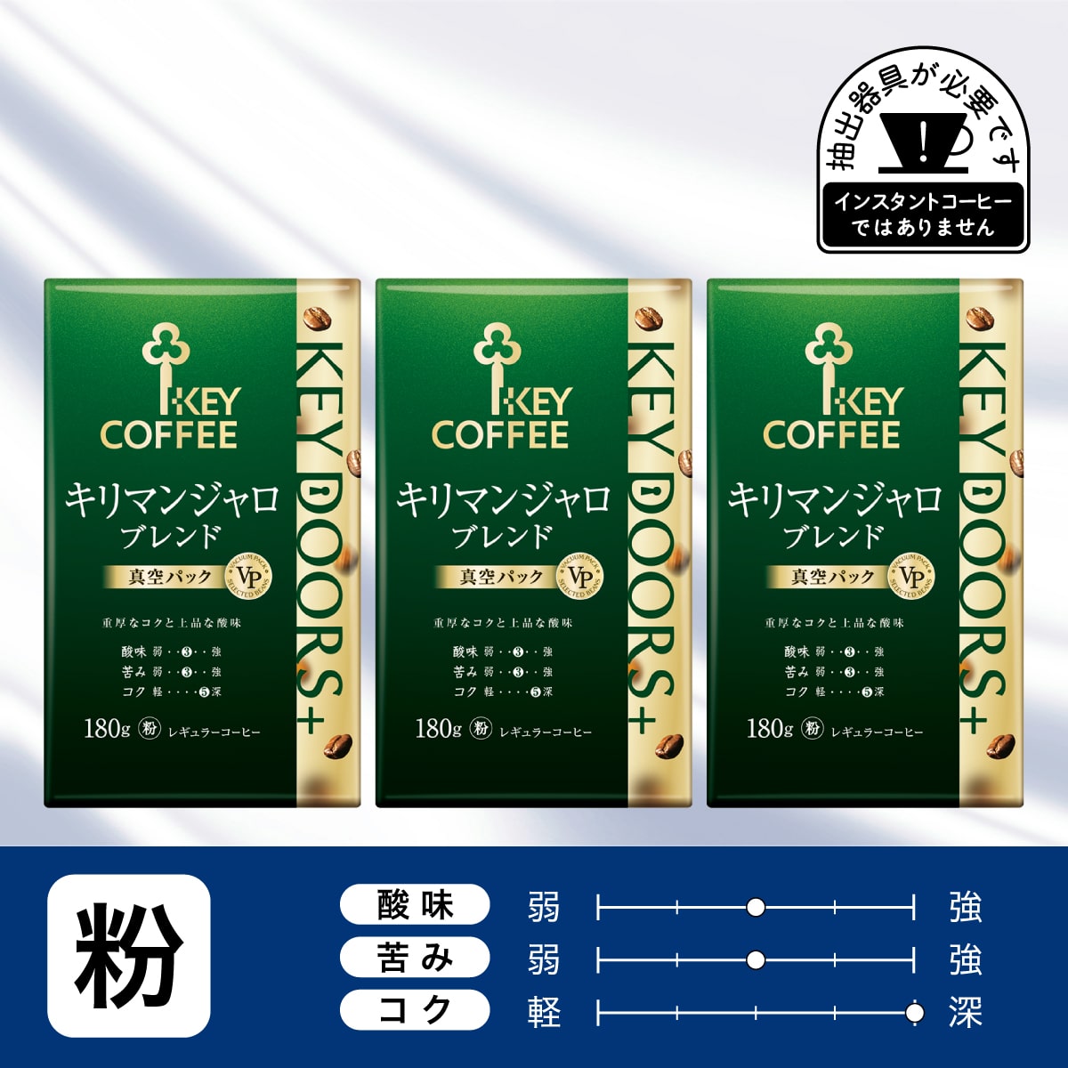 商品特徴 選び抜いた原料と経験豊富なブレンダーと焙煎士が醸し出す豊かな香りと味わいを提供する「KEY DOORS+」シリーズ。 挽きたての香りをお届けする真空パックでお届けします。