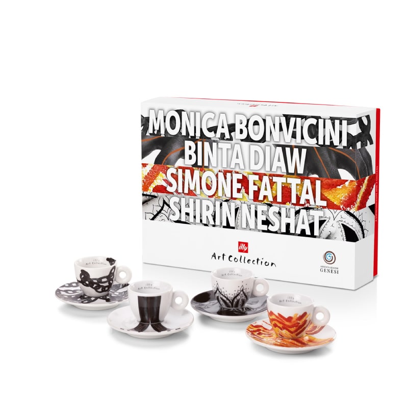 カップの底面にはサイン、シリアルナンバーが印字されています。 数量限定製造となっております。 商品にはポスター(折畳済み)と小冊子が含まれます。 セット組み合わせ: エスプレッソカップ 4客セット