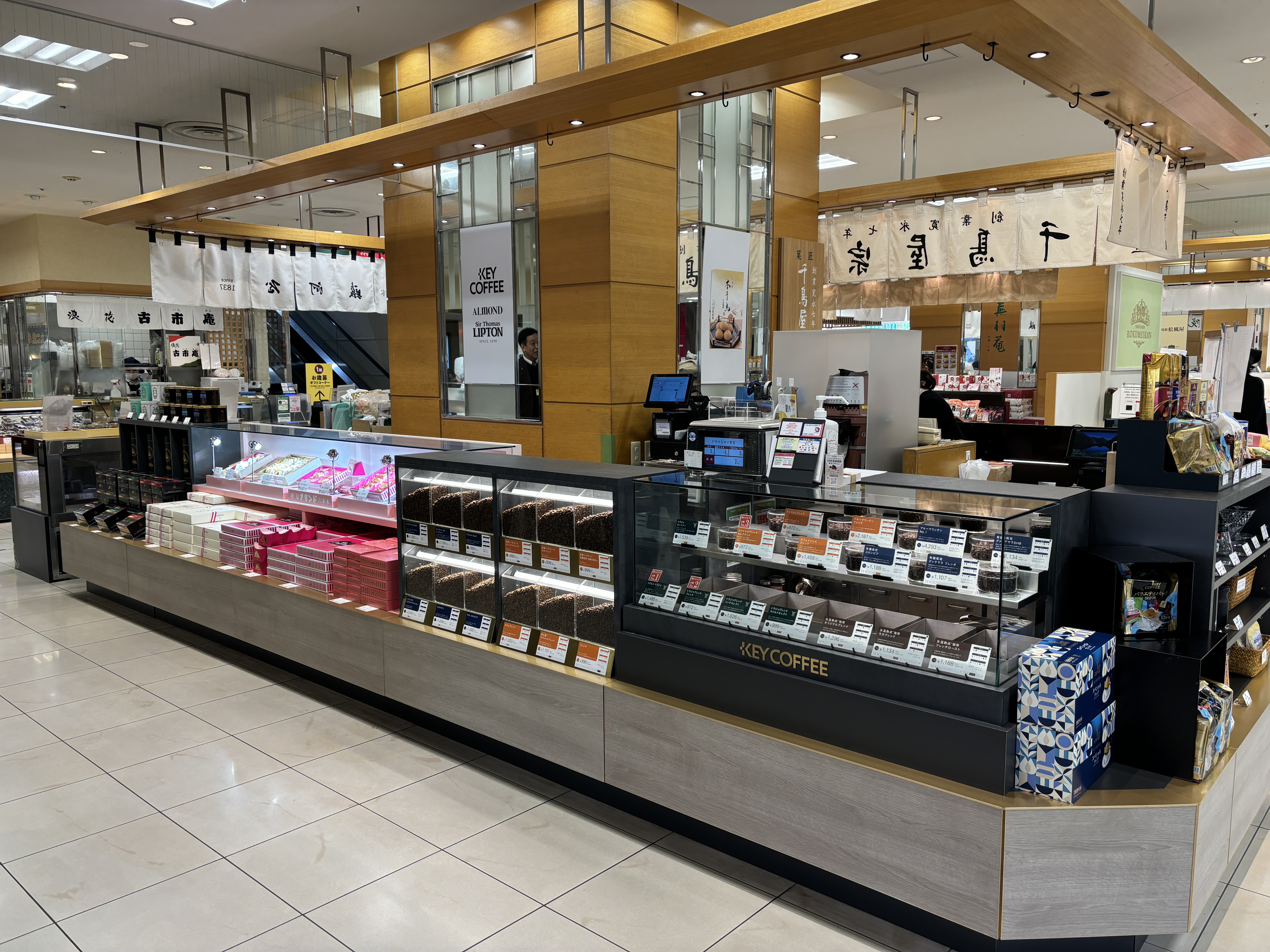 近畿圏唯一のキーコーヒー直営ショップです。「トアルコ トラジャ」をはじめとする25種類のコーヒー豆を取り扱っています。六本木アマンド、サー・トーマス・リプトンも取り揃える全国で唯一のコラボレーションショップです。